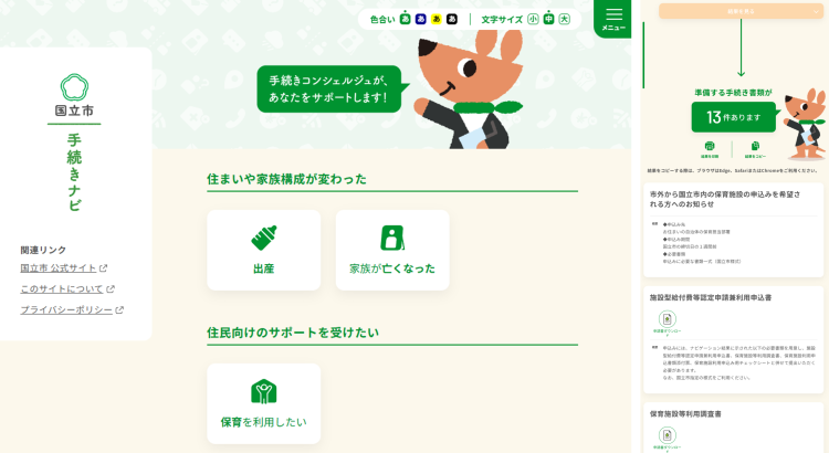 保育関係のお申し込みを行う市民の皆様には「必要書類がわかりづらい」「市役所の開庁時間に問い合わせをするのが難しい」とのお声をいただいておりました。そこで、同様なお声をいただくことがある出産・おくやみの手続き案内で導入している「手続きナビ」の導入を決めました。